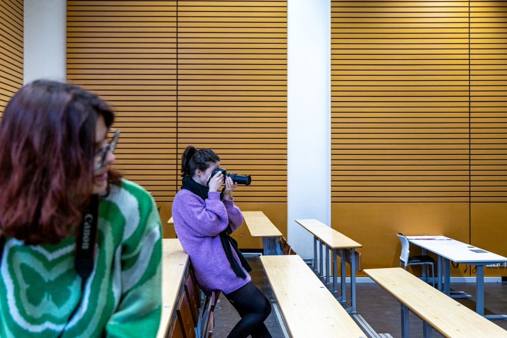Avant d’aller photographier les artistes, les étudiants se sont entrainés à cadrer, régler leur appareil photo, mettre en scène, gérer la lumière et la composition, dirigé un modèle.