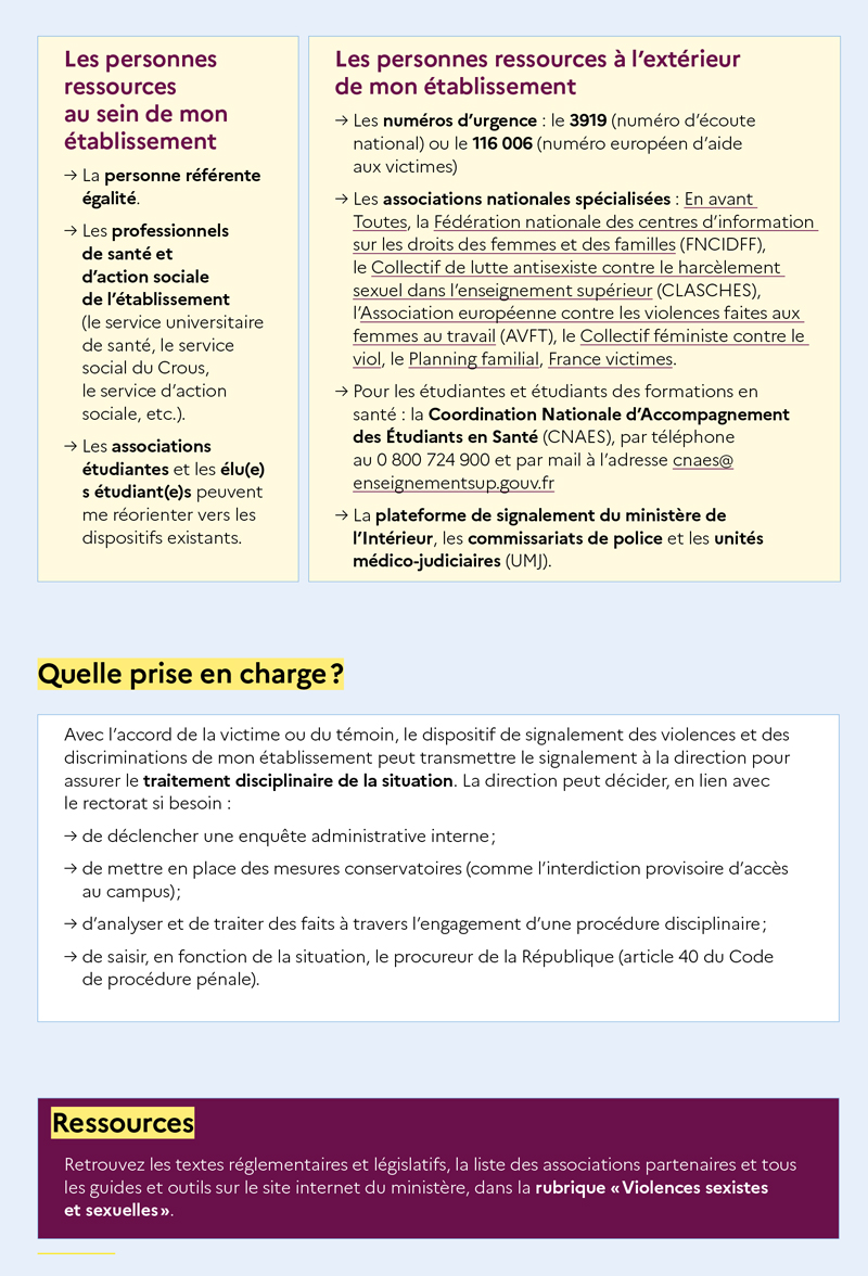 Fiche réflexe à destination des victimes et témoins de VSS dans l'enseignement supérieur et la recherche