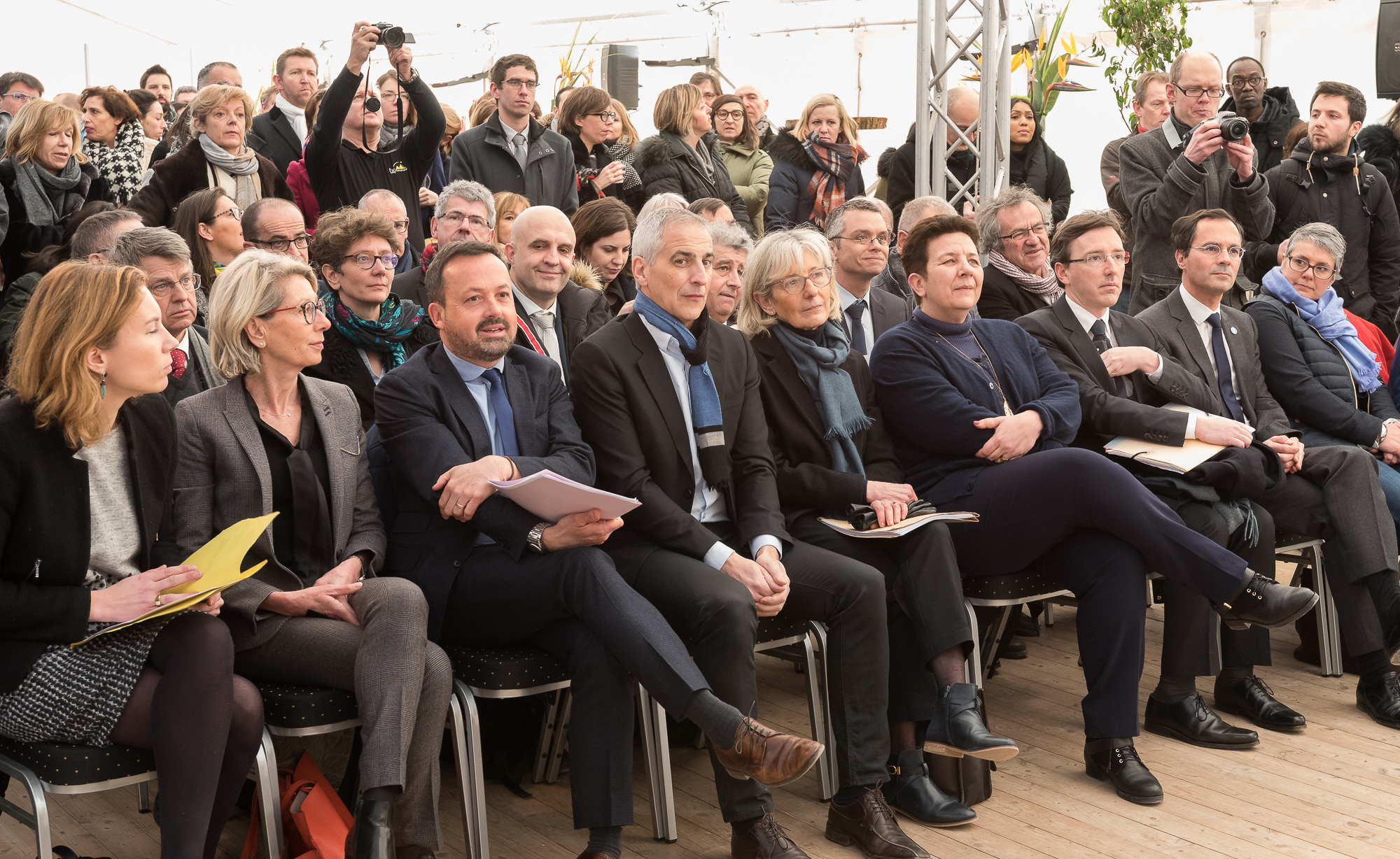 M. Jean-Luc FUGIT, Député du Rh?ne, Mme Marie-Danièle CAMPION, Rectrice de l'académie de Lyon, Rectrice de la région académique Auvergne-Rh?ne-Alpes, chancelière des universités, Mme la Ministre, M. Emmanuel STOSKOPF, Préfet délégué pour la défense et la sécurité, M. Guillaume BOUDY, Secrétaire général à l’investissement, Mme Anne BRUGNERA, Députée du Rh?ne