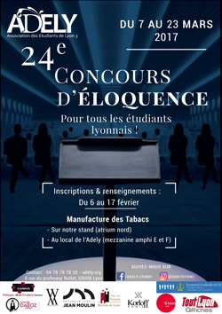 Du 7 au 23 mars, participez au grand concours d’éloquence organisé chaque année par l’ADELY – Association des ?tudiants de Lyon 3.