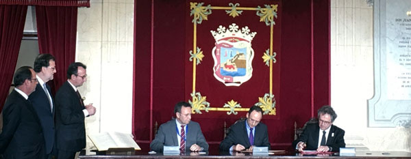 Signature de l’accord en présence de Fran?ois Hollande et Mariano Rajoy.
