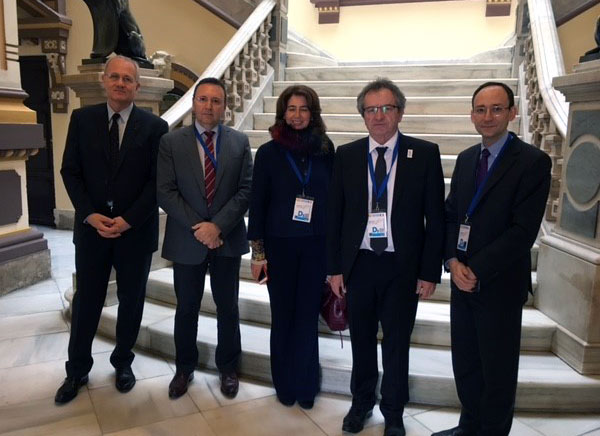 De g. à dr. : Jean-Yves Le Gall (Président du CNES), Alain Dupuy (CDEFI), María Teresa Lozano Mellado (CRUE) Jacques Comby (CPU), Josep Maria Garrell (CRUE)